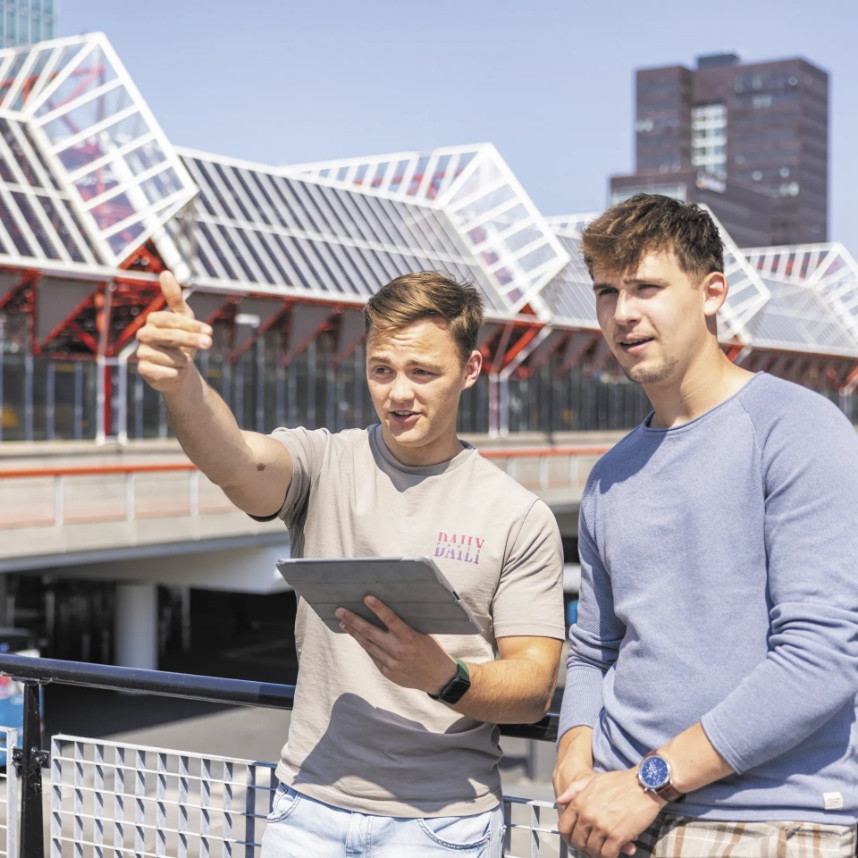 Hoe betrek je mensen bij het verduurzamen van hun eigen buurt? Samen met studenten, buurtbewoners, ondernemers, maatschappelijke organisaties en professionals in de wijk werken we aan dit soort vraagstukken. Studenten werken ook echt in de wijk, in een fieldlab. Want contact maken is cruciaal bij transities.”